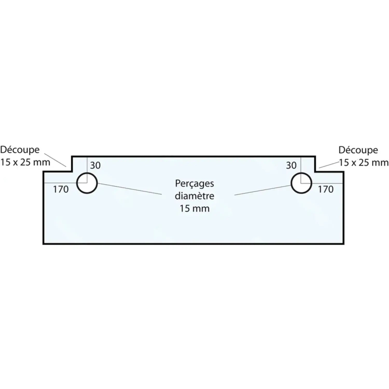 Dimensions : 684 x 218 mm – Epaisseur : 6 mm 2 DÉCOUPES LATÉRALES 15 x 25 mm.